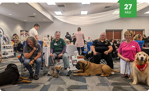 THERAPY DOG: Class designed to teach basic criteria needed to enable you and your dog to pass a Therapy Dog exam. These exams are available through several sources and passage of such an exam is required for you and your dog to participate as a Therapy Dog team. Prerequisite: Completion of the Intermediate level class.